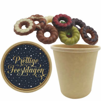 Bio-beker naar keuze gevuld met Kerst kransjes, Hulstblaadjes of Kerststerretjes