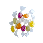 Per stuk verpakte zuurtjes in heldere folie in verschillende vruchtensmaken
