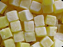 Dropstaafjes met een gekleurde suiker coating. In sommige batches ziet de coating er wat minder uit, maar de smaak is nog steeds goed.